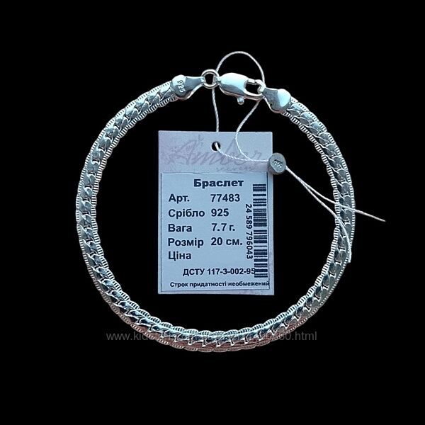Матеріал - срібло 925 проби.Довжина - 18 см, вага - 6.8 г.