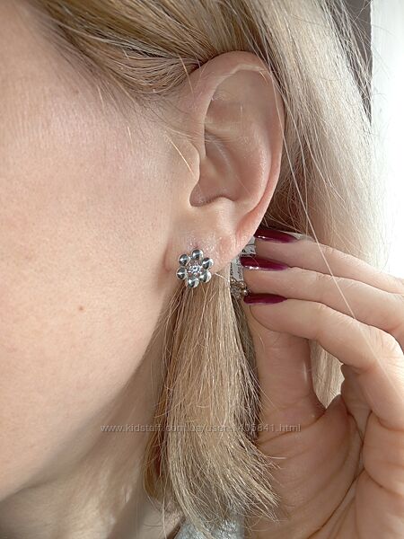 Подробное описание: Срібні сережки квітка з фіанітами англійська застібка мінімалізм
