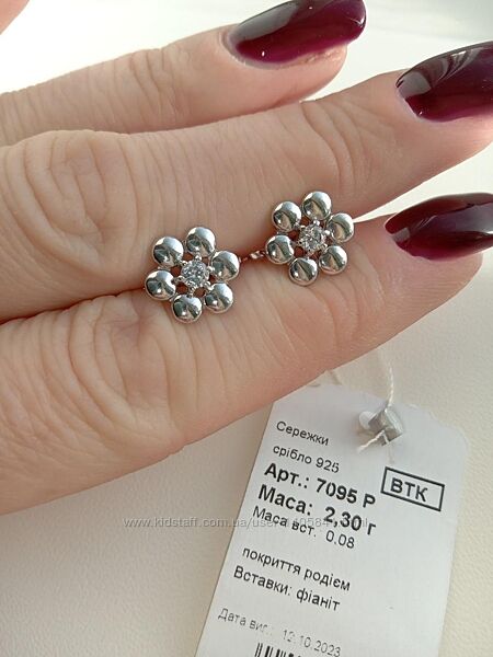 Сережки вкриті родієм (захищає срібло від потемніння)Усі вироби апробовані державною пробірною палатою України, з пломбою та біркою.