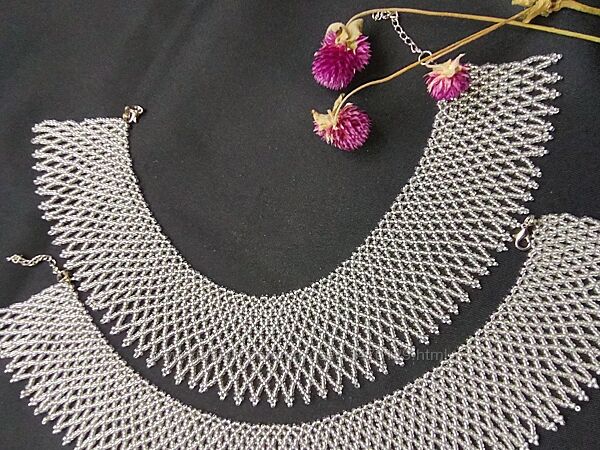 Однотона базова прикраса- ідеально підходить до офісного стилю чи casual. Також прекрасно буде пасувати до образів у поєднанні з багатошаровими прикрасами.Виконана з чеського бісеру, напівпрозорого, сірого кольору.