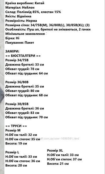 Подробное описание: Комплект жіночої білизни 36/80B, 38/85B РАСПРОДАЖА