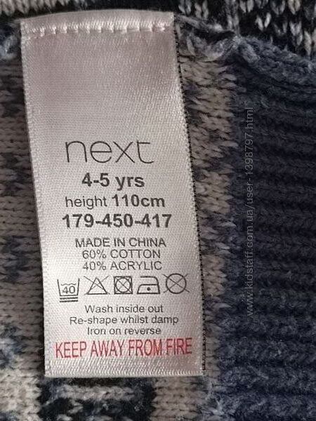 Теплий, вязаний світшот новорічний фірми Next в гарному стані на хлопчика 4-5 років, розмір 110.Виміри: