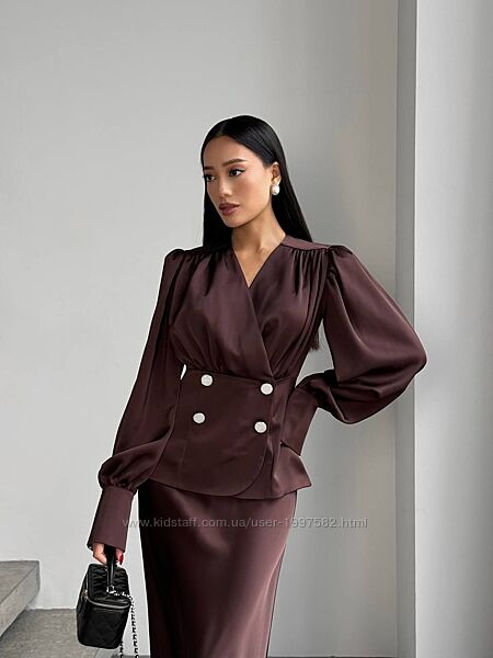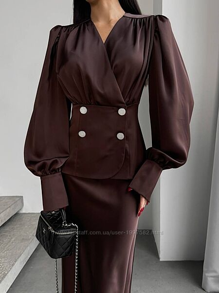 Подробное описание: Жіноча сорочка сатинова з довгим рукавом класчина чорна коричнева біла