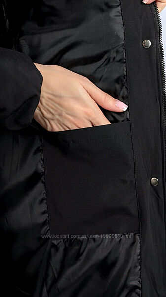 Это стильное и практичное женское пальто черного цвета станет идеальным дополнением к вашему осенне-зимнему гардеробу. Изготовленное из высококачественной плащевой ткани, пальто обеспечивает надежную защиту от ветра и влаги. Наполнитель из синтепона 200 г/м² гарантирует отличное сохранение тепла, что делает пальто идеальным для холодной погоды.