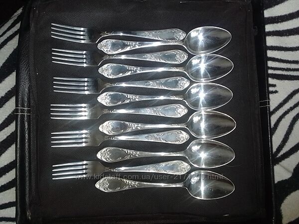 Подробное описание: Мельхиоровый столовый набор приборов на 6 персон