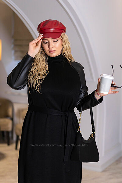 Подробное описание: Жіноче плаття міді з рукавами з екошкіри Freya, 42-56 р.