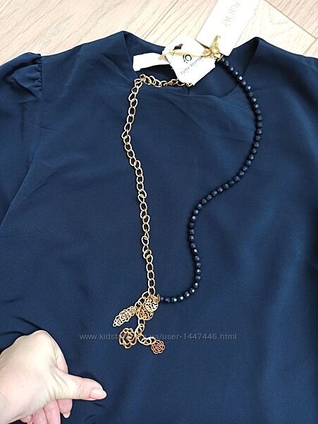 397. Блуза нова, з біркою. Збоку на блискавці. Довгий рукав. Тканина щільний шифон, не просвічує. Склад: поліестер. Розмір 40 (L), більше підійде на М. Підвіска в комплекті.Плечі 35 см,