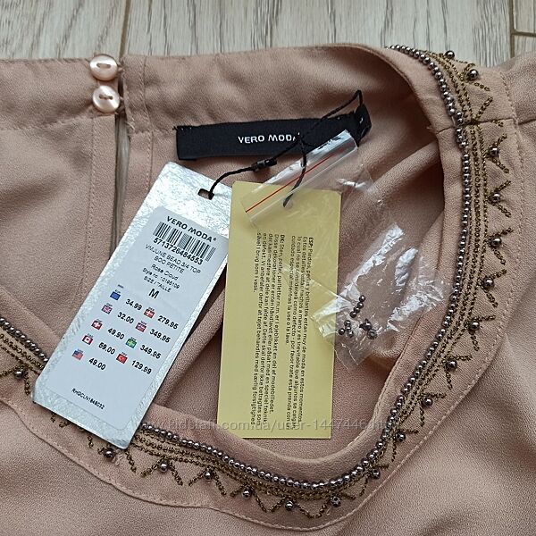 538. Блуза нова, з біркою, без нюансів. Горловина розшита бісером, нічого не відірвалося. Тканина креп шифон, не просвічує. Розмір по бірці М.Плечі 37 см