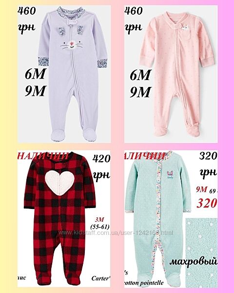 Тёплые слипы Картерс в наличииНовая коллекция - 450-480 грн!