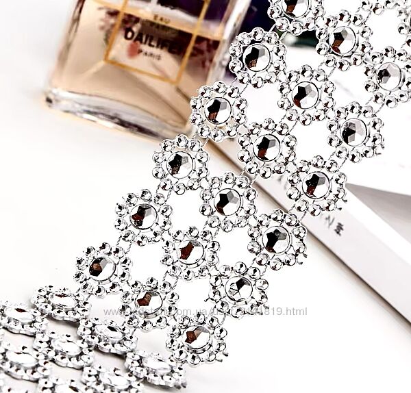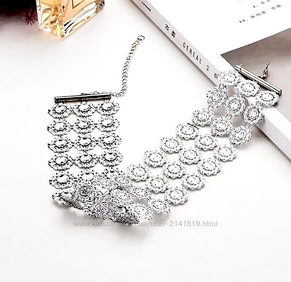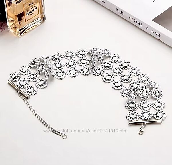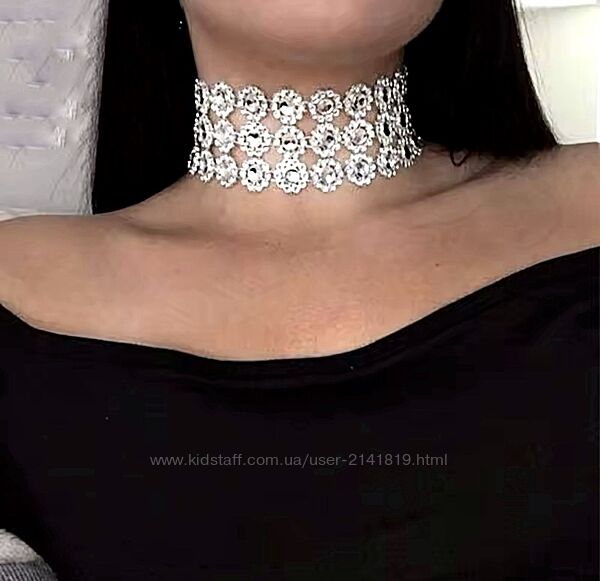 Подробное описание: Блестящий чокер на шею серебро, серебристый чокер стразы акрил
