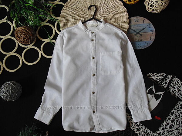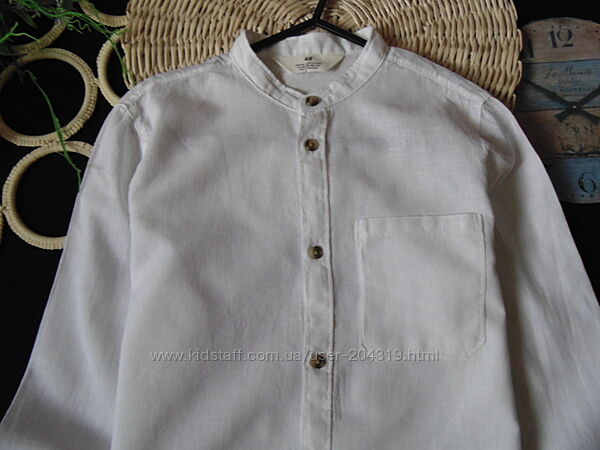 Стіляча сорочка з льону H&M з воротом стойкою " мао" на 9-10 років ,рост 146-152 см