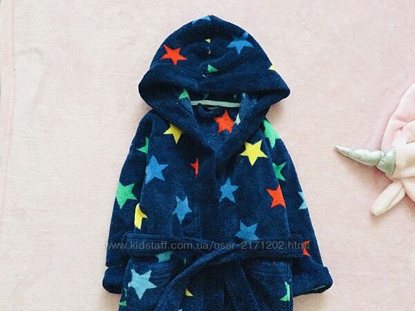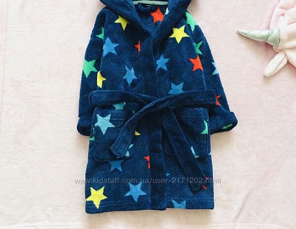 Next 1-3 рок., 92 зріст флісовий, махровий, пухнастий халат з Зірками. теплий, банний, на море або в басейн. Стан: ідеальний зав´язується на талії пояском. є Кишені.синій ПРОДАНО довжина 56; рукав від вороту 40