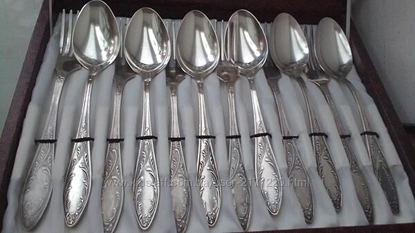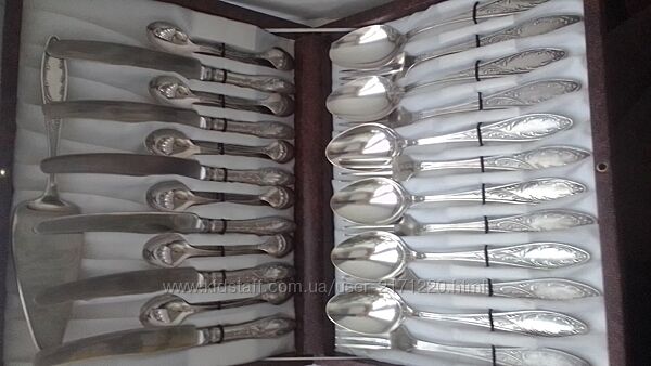 Продаю столовый набор хорошего качества в футляре Всего 32 предмет с большим покрытием серебра. Цена 4000 гр Пересылаю Новой почтой С предоплатой Звоните в любое время подберем нужные для Вас приборы от разных производителей. Возможен самовывоз В набор входит 6 столовых вилок 6 столовых ложек 6 чайных ложек 6 кофейных ложек 6 ножей и лопатка для торта и половник.Предложения Premium магазинов
