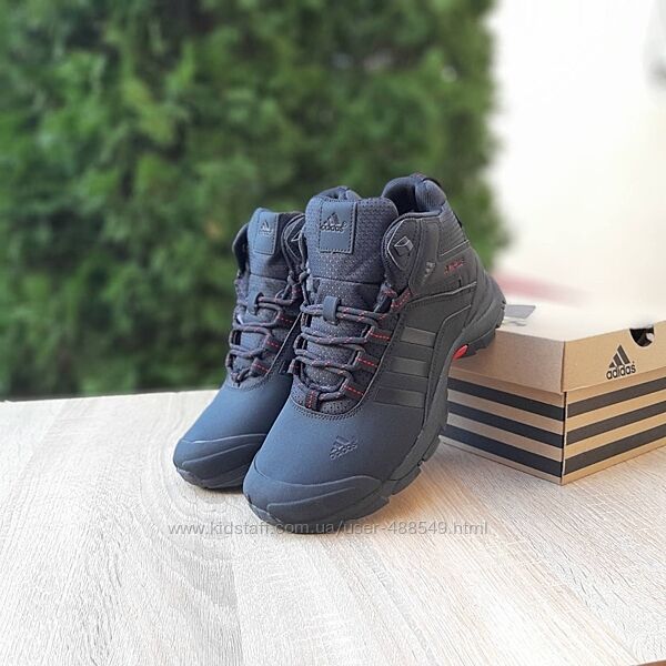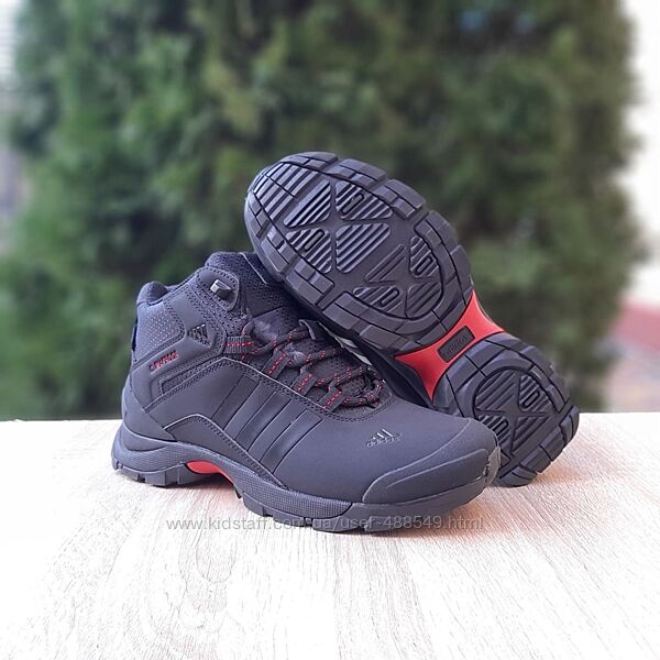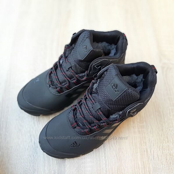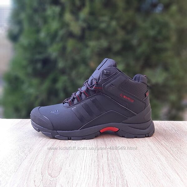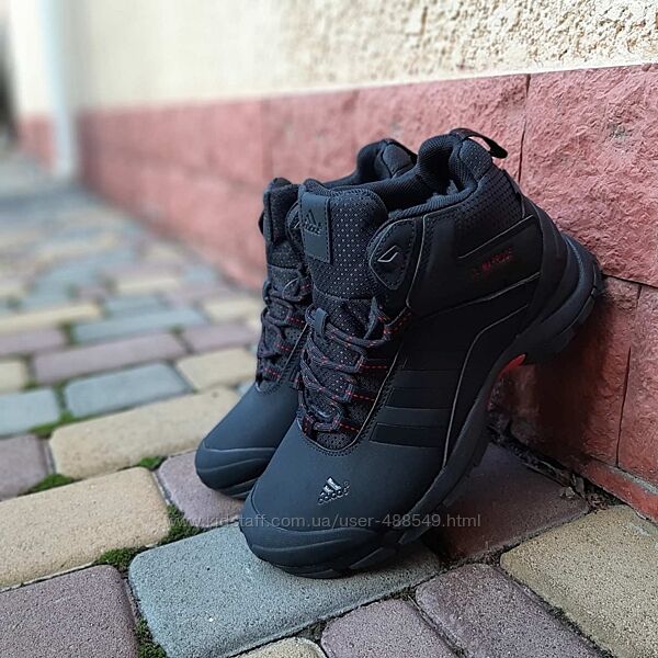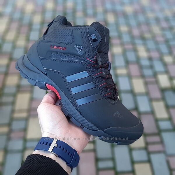 Подробное описание: Зимові чоловічі ботінки з хутром Adidas Climaproof Fur високі чорні з черво