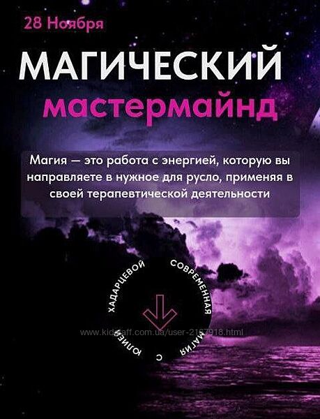 простраивать и использовать собственные магические каналы ими пользоваться Форма регистрации на мастермайнд: Магический мастермайнд – 65 000 руб. *проживание, перелет и питание в стоимость мастермайнда не входят Берем мастермайнд в записи от 28.11.2023 г : 8 часов в записи. Стоимость 790 гривен