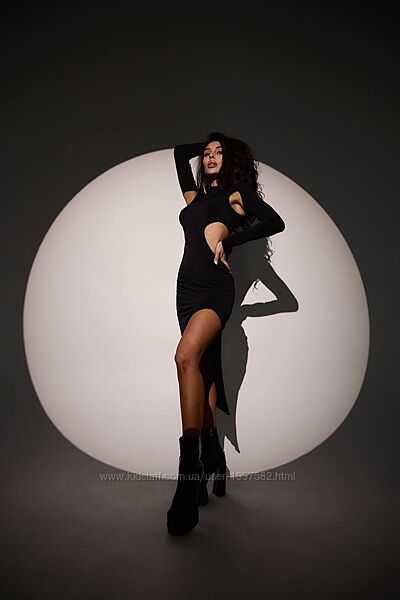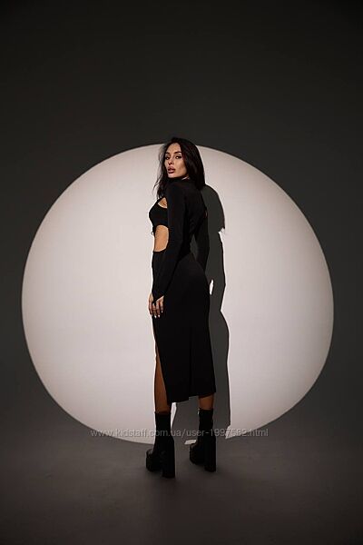Подробное описание: Вечірня сукня максі з трикотажу з розрізом на нозі з довгим рукавом чорна