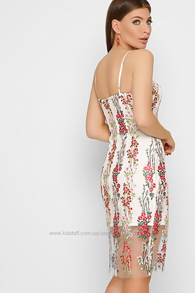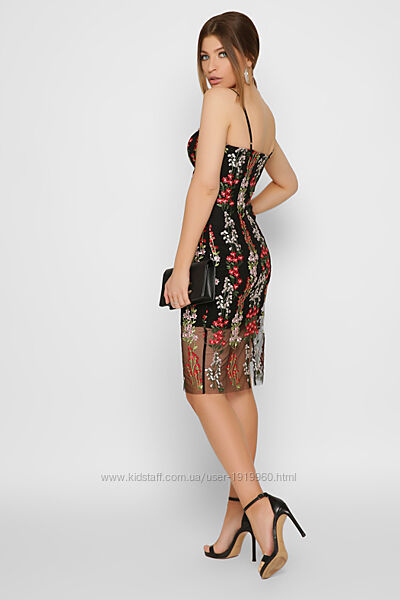 Жіноча сукня на бретелях. Модель виконана у яскравих тонах, на спинці застібається на блискавку. Виріб має напівпрозору тканину, що підкреслює красу жіночих ніг.Довжина: 83 смМатеріал: Сітка Вишивка