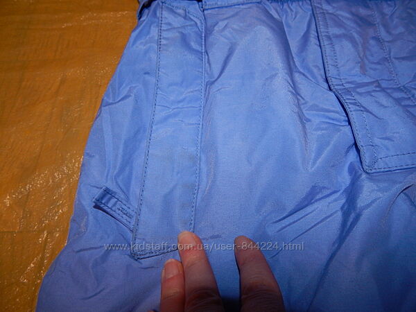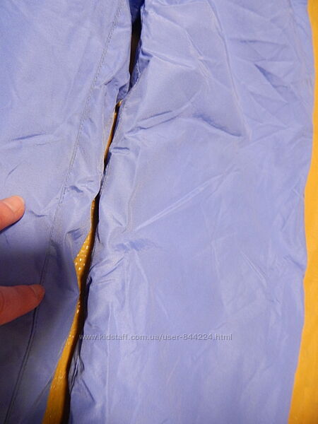 НЮАНСИ - є пара місць де не виполоскався засіб для прання, після чергового прання та гарного виполіскування зникнуть, маленька чорна плямка-волосинка, наче хтось провів голкою, приблизно 7 мм на грудях праворуч, злегка заношено комір всередині та зовнішні кишені, трішки сильніше внутрішні шви рукавів та штанів, а також манжети, знизу є невеликі плями - не відпираються, а також легка потертість по самому краю штанин, також дещо заношена попа, на ній є дві подряпини від штучного снігу, які майже непомітні, потрібно спеціально шукати. Що змогла показала на фото. Не все бере фотоапарат. При носінні непомітно.
