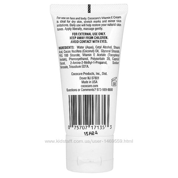 Подробное описание: Cococare зволожувальний крем з вітаміном E 28,3 мл 1 рідка унція обличчя ті