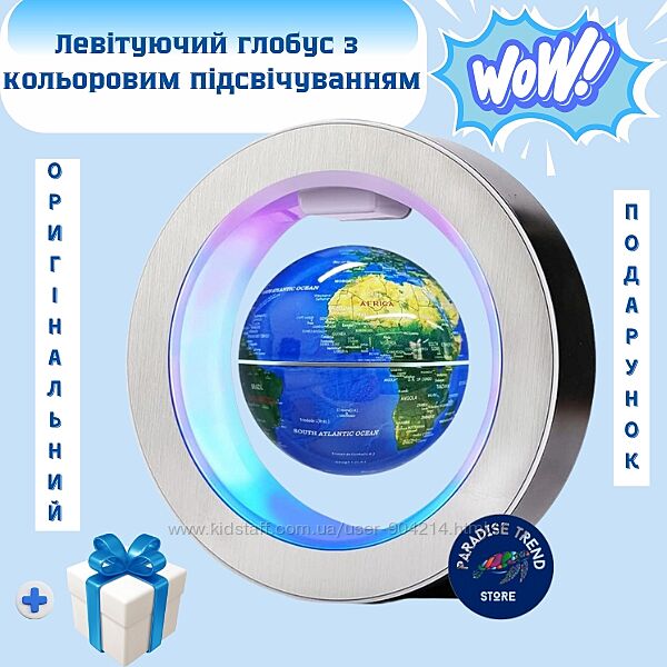 Подробное описание: Левітуючий глобус на магнітах з підсвічуванням для інтерєру