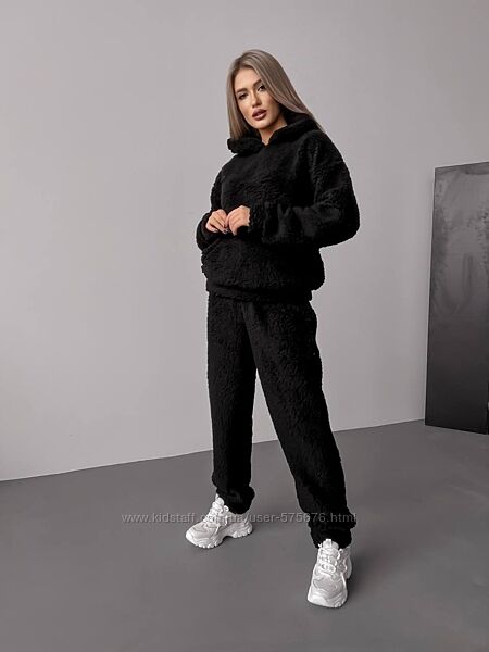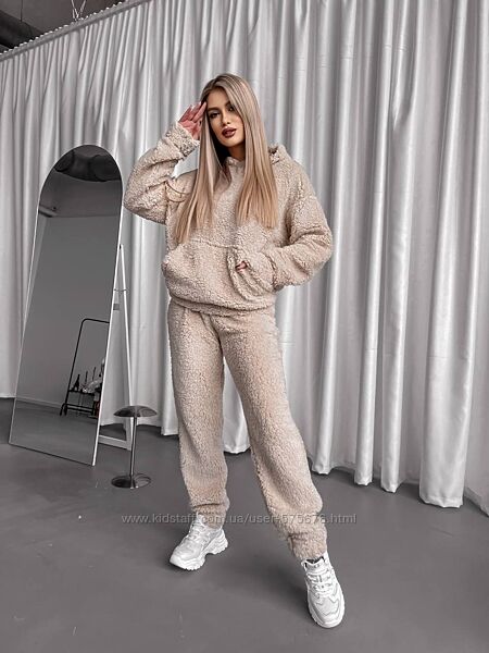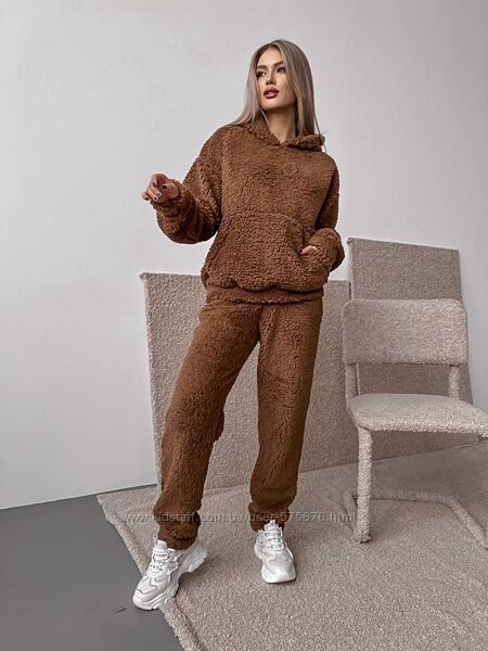 Теплий костюм теддікофта з капюшоном та кишенею кенгуру,