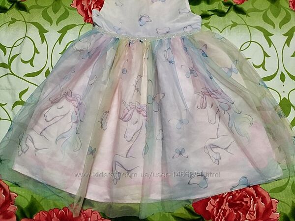 Нарядне, пишне, бальне плаття, сукня з єдиноріжками для дівчинки 4-6 р