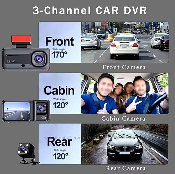 Подробное описание: Видеорегистратор 1080р на 3 камеры с функцией записи на 3 камеры