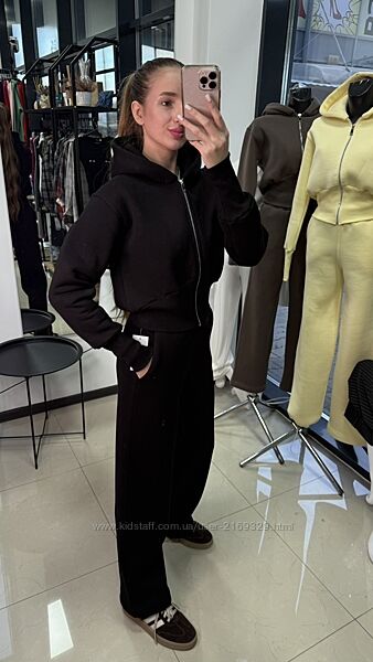 Дуже класні корсетні костюми - укороченна зіп худі з подвійним капюшоном та штани палаццо з затяжками по низу, які можна зробити джогерамиКолір чорний, сірий та шоколад