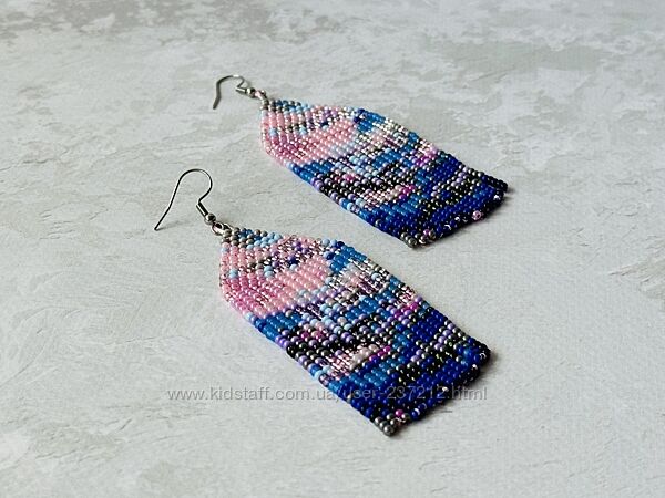 Сережки з бісеру з візерунком за мотивами картини Клода Моне