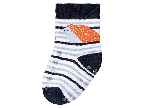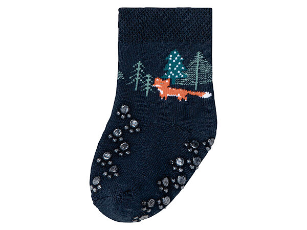 Дитячі термошкарпетк від німецького бренду Lupilu з махровою внутрішньою стороною. З силіконовими стопорами на підйомі та знизу. Природній комфорт при носінні завдяки органічній бавовні. Оптимальна посадка та стабільність форми завдяки волокну LYCRA®. Кількість 2 пари.Заміри: надаємо по запиту