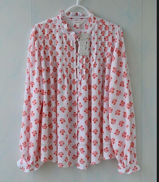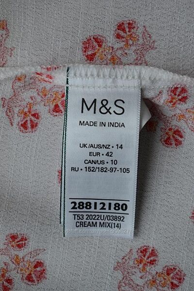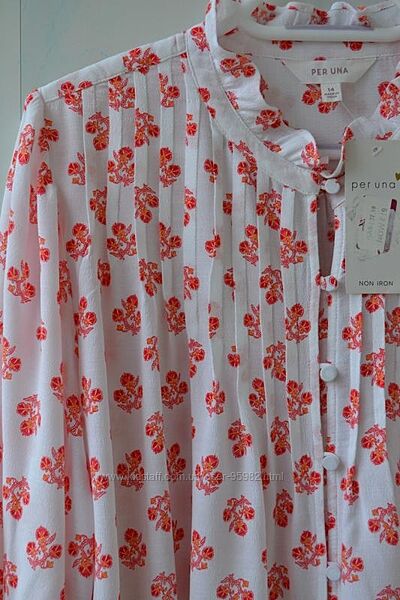 Блуза Per Una від Marks & Spencer, вільний крій, 100% віскоза. Приємна до тіла тканина, не прозора, структура така, що не дуже сильно мнеться, на бирці 14 розмір, сяде й на більший. орієнтуйтеся за вимірами. Як сидить на людині видно на промофото. Якість у цій лінії — чудове, лекала та тканини бездоганні.НОГ — 62, поб — 79, плечі — 38, лінія плеча трохи завищена, довжина рукава — 62 см, напівобвід по біцепсу — 24, довжина — 67/63