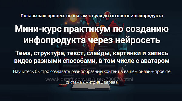 Подробное описание: Дмитрий Зверев Мини-курс практикум по созданию инфопродукта через нейросеть