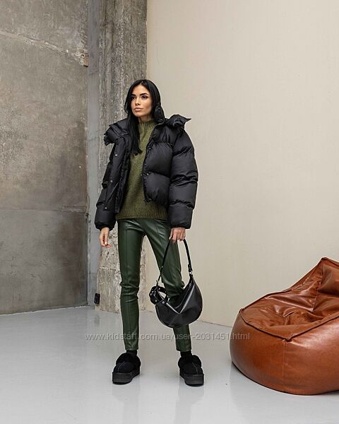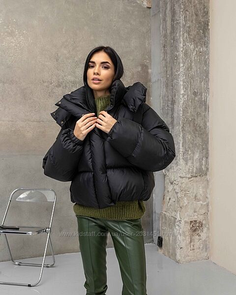 Подробное описание: Пуховик женский укорочённый оверсайз, со съемным капюшоном, автоледи черный