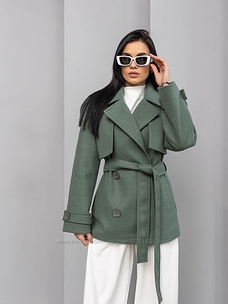 Подробное описание: Пальто женское короткое демисезонное шерстяное, дизайнерское, с поясом