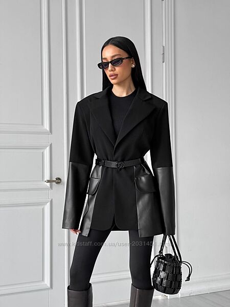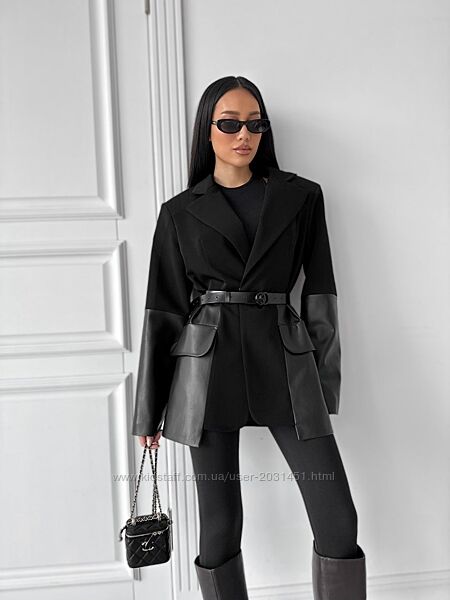 ✔ Гармоничное сочетание качественной эко-кожи и качественной костюмной ткани создают непревзойденный силуэт.
