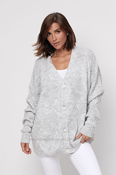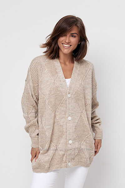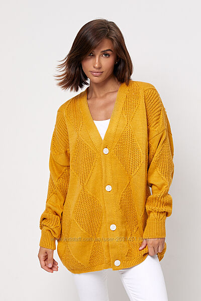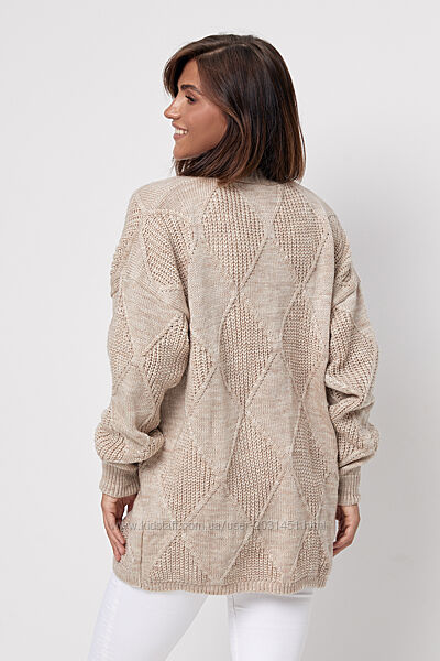 Подробное описание: Кардиган женский вязаный, кофта вязаная с узором ромбы