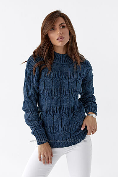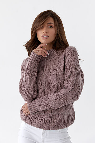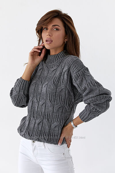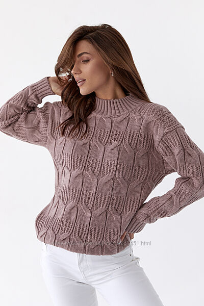Фабричное качествоСтильный вязаный однотонный женский свитер с красивыми элементами вязки.