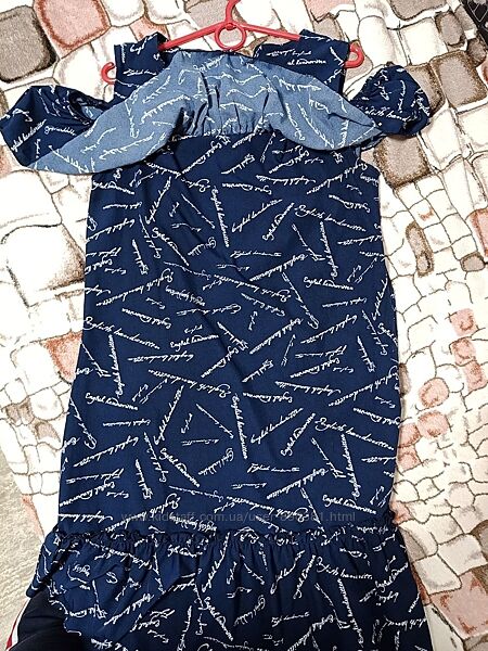 Продам платье на подростка 44 размер, подходит на 42-46 примерно,см по замерам ниже. В хорошем состоянии,одевалась пару раз,вискоза,не просвечивает. Трапеция форма,лёгкое,темно синего цвета. На руках рукава приспущены,фиксируются резинкой,интересная и нарядная модель платья.Замеры