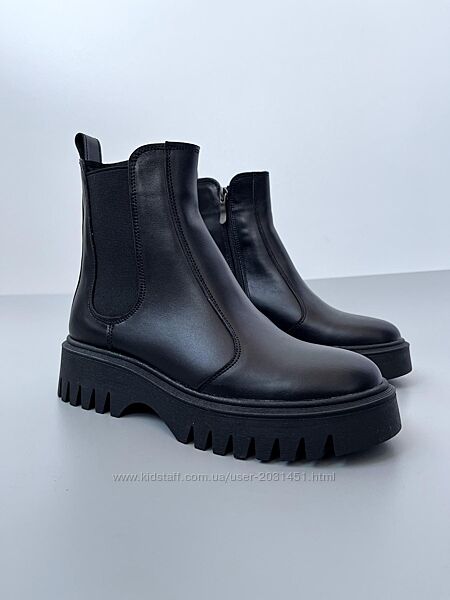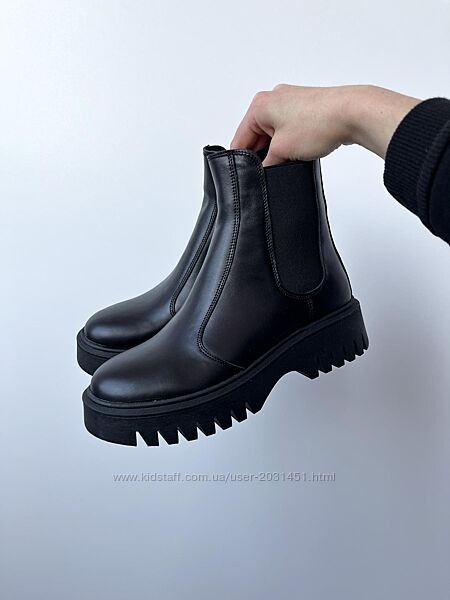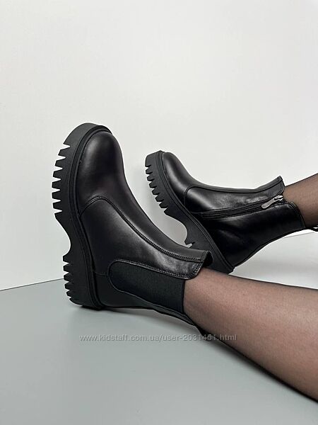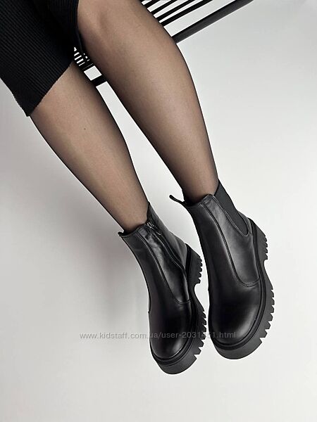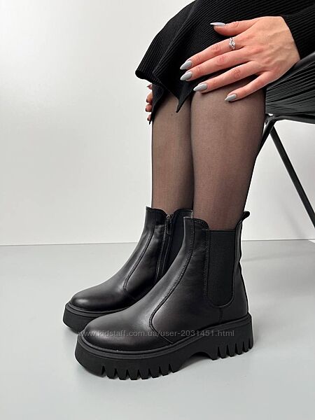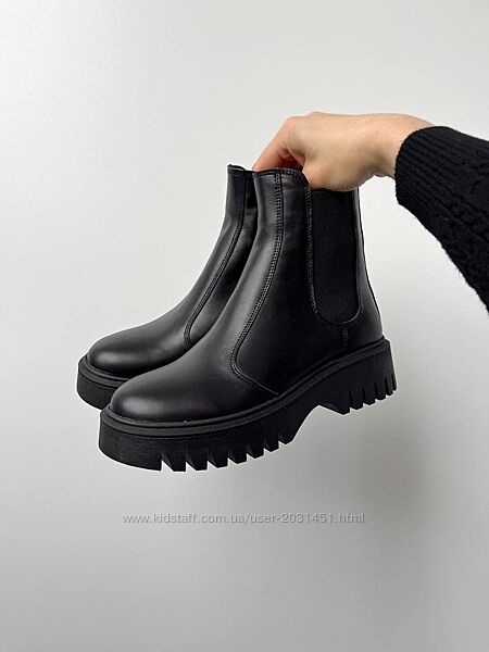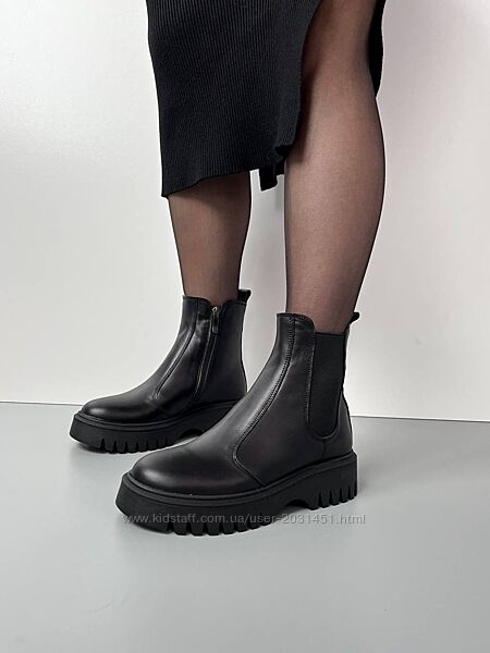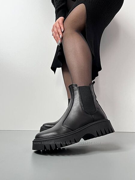 Подробное описание: Челси - ботинки женские кожаные зимние на меху, черные