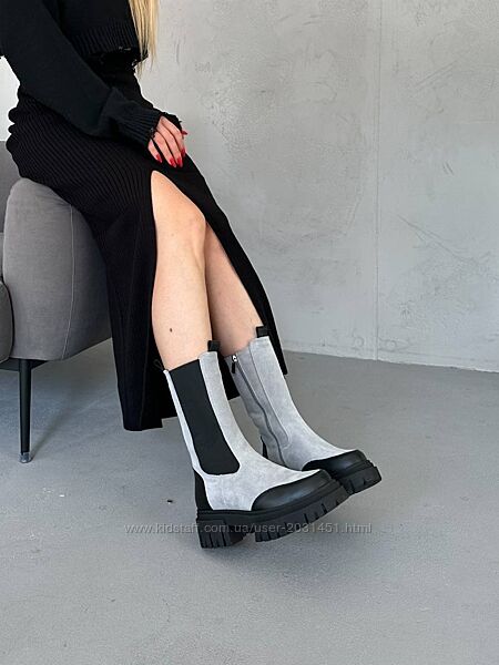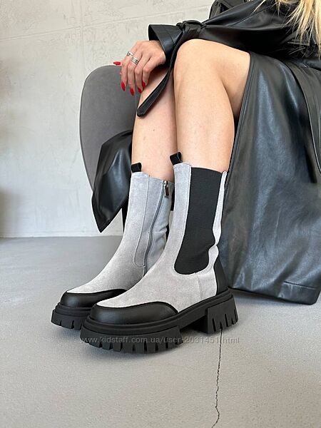 Подробное описание: Ботинки женские зимние замшевые, на меху, серые - черные
