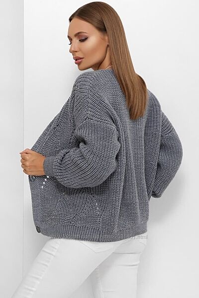 Стильная и комфортная женская вязаная кофта, из приятной к телу пряжи.Застежка на пуговицы.