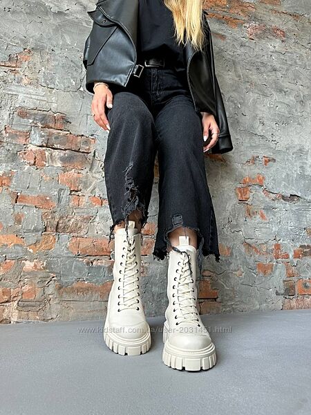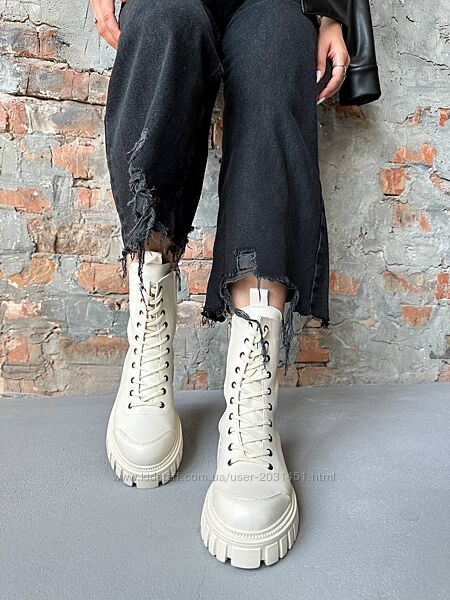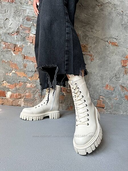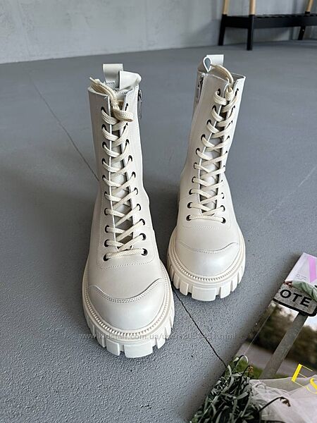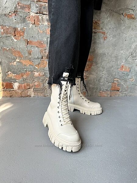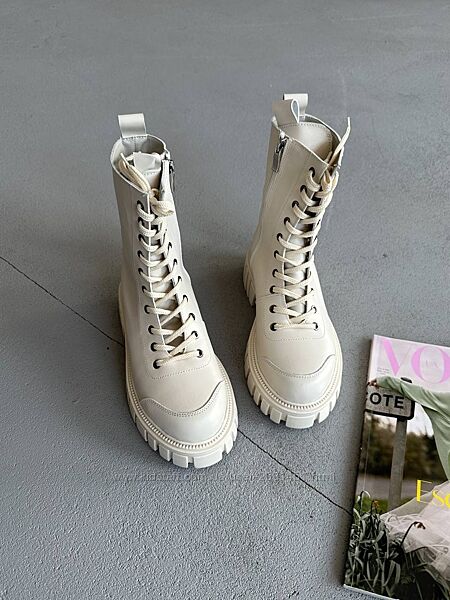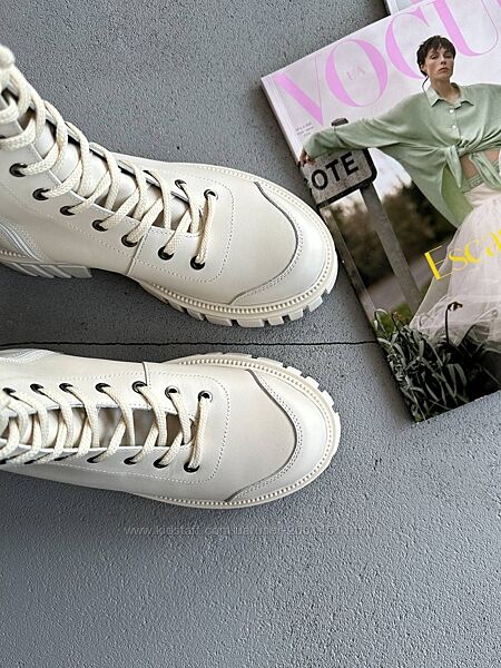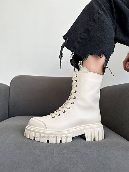 Подробное описание: Ботинки женские берцы кожаные демисезонные, весенние осенние, молочные
