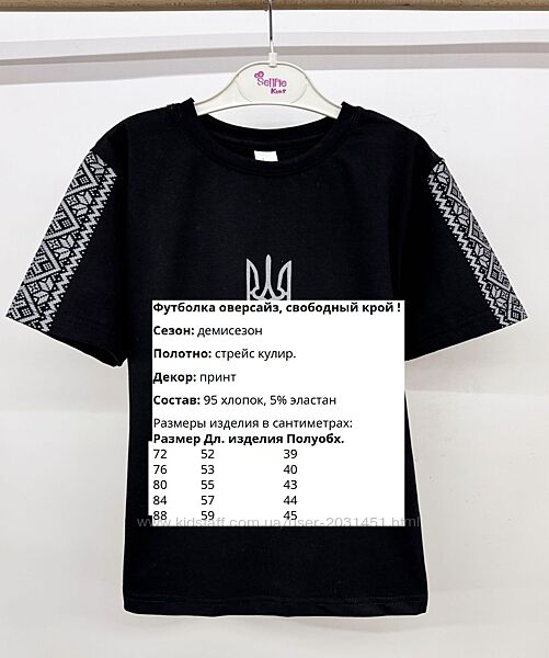 Подробное описание: Футболка детская подростковая хлопковая оверсайз тризуб патриотическая
