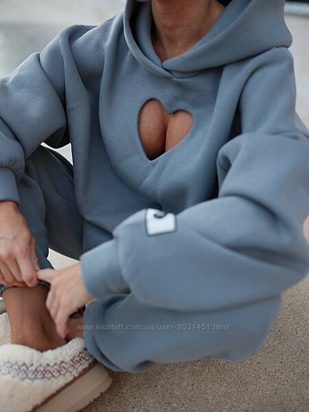Подробное описание: Костюм женский спортивный теплый, худи с вырезом сердце, с капюшоном, штаны