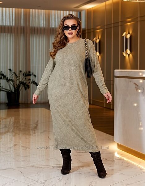 Подробное описание: Платье женское длинное, шерстяное, трикотажное, с круглой горловиной, батал