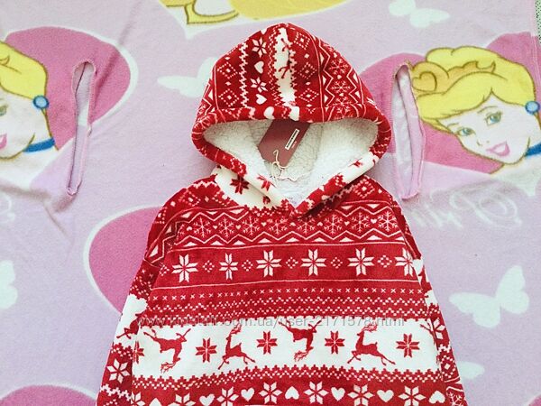 5-6 зріст Disney. Новорічний халат. Худі оверсайз. домашня сорочка, супер - тепле флісове з капюшоном. модний трендовий оверсайз. є кишені. всередині фліс Тедді. новий з бірками!довжина 60; пог 56; рукав від вороту 52