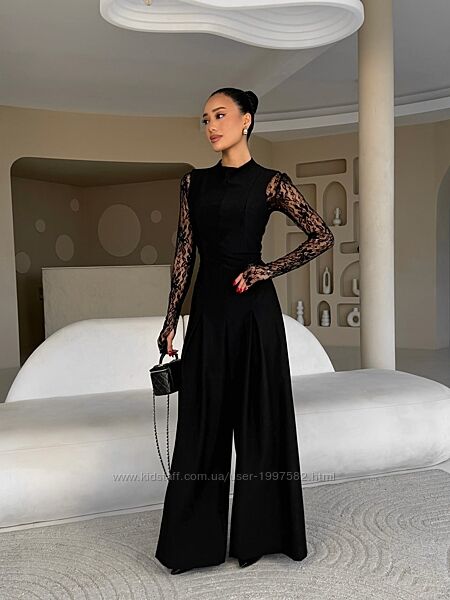 Подробное описание: Жіночий комбінезон брючний вечірній святковий чорний білий