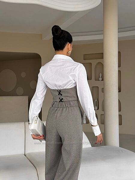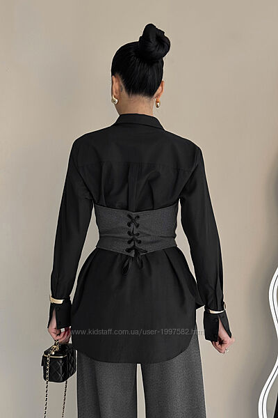 Інші корсети нашого магазину Ви можете переглянути за посиланням: https://www.kidstaff.com.ua/user-anno-1997582/sect...Корсет Тетра. На фото представлені наші корсети у поєднанні з сорочкою, бюстом, та брюками для прикладу створення образів. Корсет по спинці на шнурівці – можна регулювати об’єми.