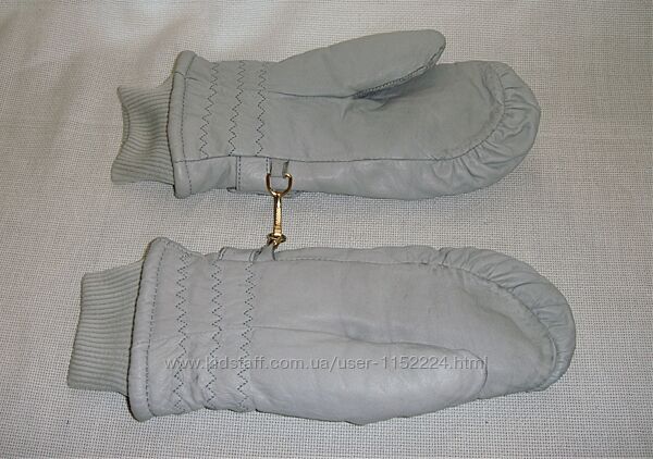 Детские кожаные теплые зимние варежки на девочку 134-140