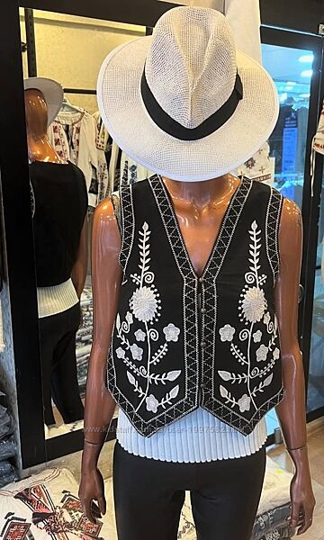 Подробное описание: Жіночий жилет з вишивкою вишиванка біла чорна